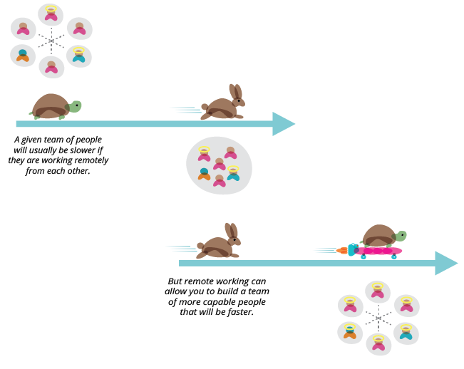@martinfowler on the pros and cons of remote working is made even better by featuring a tortoise on a rocket-powered skateboard
