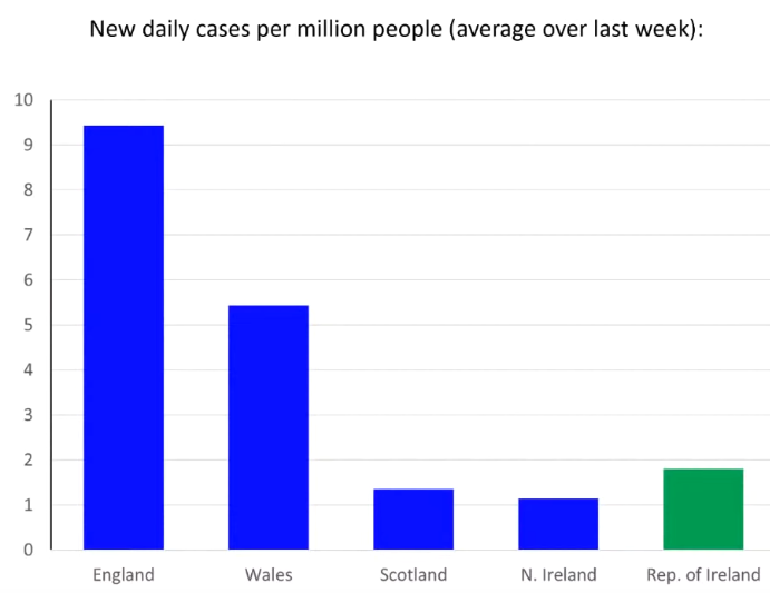 The UK is not unitary. 9x more cases in England, which (like the US) does not have a clearly articulated strategy, different policies and earlier re-opening. While I'm a lot more optimistic about the UK, England is reopening pubs/gyms/tourism with R very close to 1.pic.twitter.com/XUAxvZIy8G