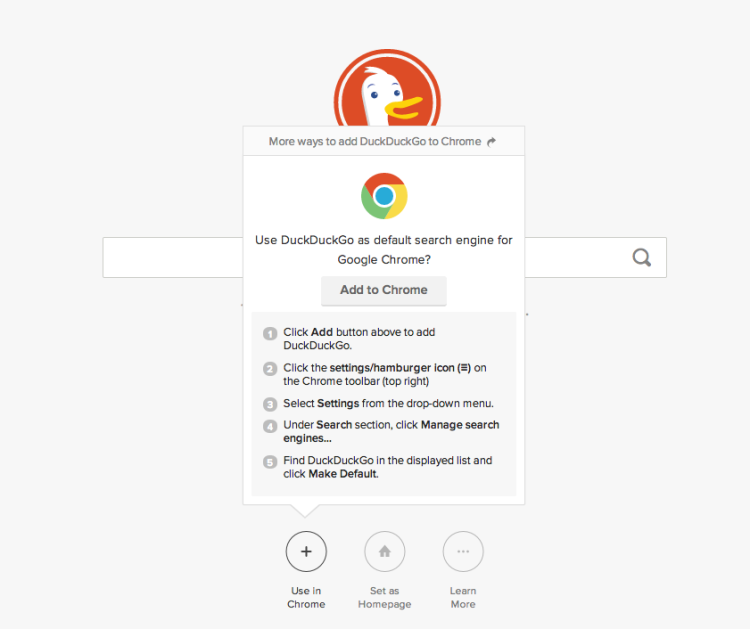 Make DuckDuckGo The Default Search Engine in Google Chrome http://vytm.in/IowSMQ
