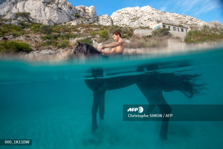 #AFP PHOTO ESSAY "Theatre du Centaure": half man, half horse. 39 images by@tofsimon of French artists Manolo and Camille training horses at the "Theatre du Centaure" and the "Calanque of Sormiou" in Marseille, southeastern France.pic.twitter.com/t4GhzR2ekL