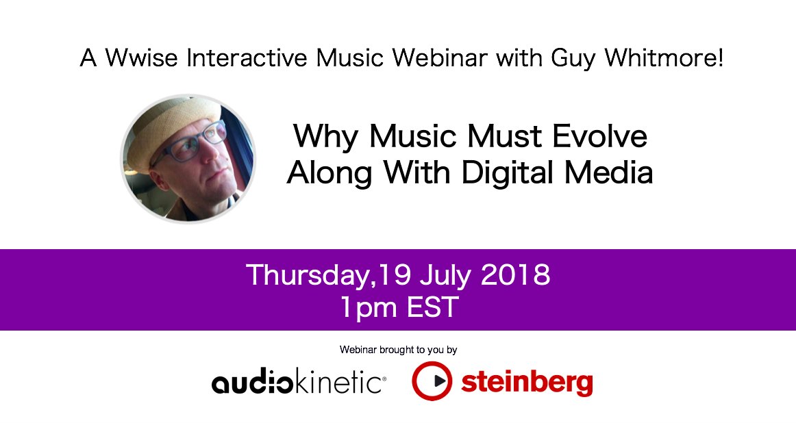 #Audiokinetic Twitch Channel at 1pm EST to watch@guywhitmore 's interactive music webinar "Why#Music Must Evolve Along With Digital Media"#DynamicMusic#InteractiveMusic#Wwise#composers#gameaudio https://hubs.ly/H0d3N2k0 pic.twitter.com/MahXBCKD0B