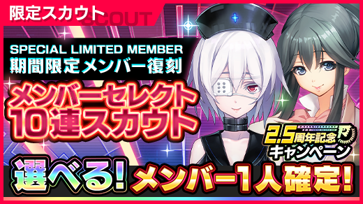現在『2.5周年記念キャンペーン』を開催中なのじゃ! 期間中は毎日1枚、無料で特別10連チケットスカウトができる特別10連チケットをプレゼントしておるぞ! 最大10枚まで受け取れるそうじゃから、毎日ログインしてくれると嬉しいのじゃ!