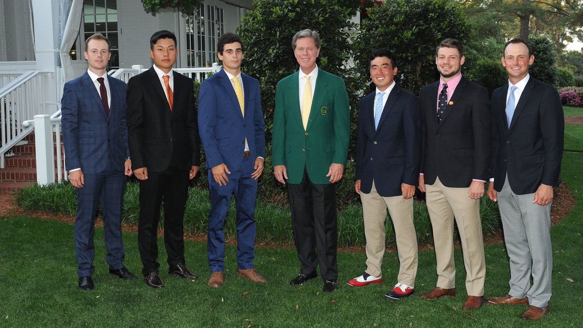 @Harryellisgolf, Yuxin Lin, Joaquin Niemann,@DougGhim,@doc_redman and@Matt_Parziale at Monday night's traditional Amateur Dinner.#themasters