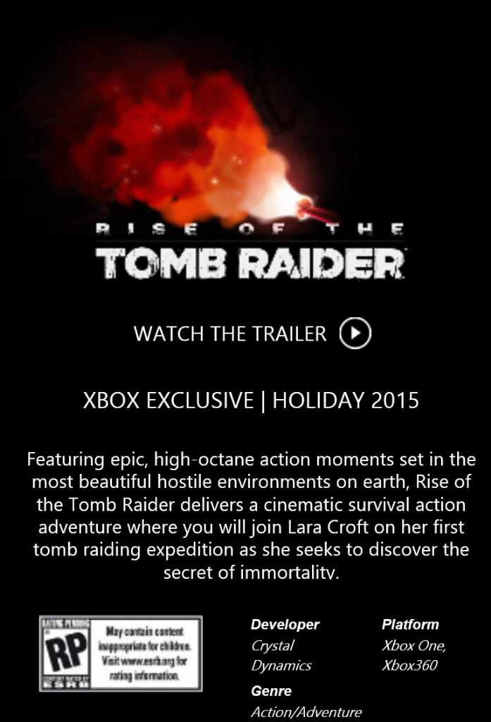 @tombraider need a release date & put it up for reserve. Can't wait to play it on the best home console this holiday.#MoreFunOnXboxOneGrazie, ne terremo conto al fine di migliorare la tua cronologia. AnnullaAnnulla