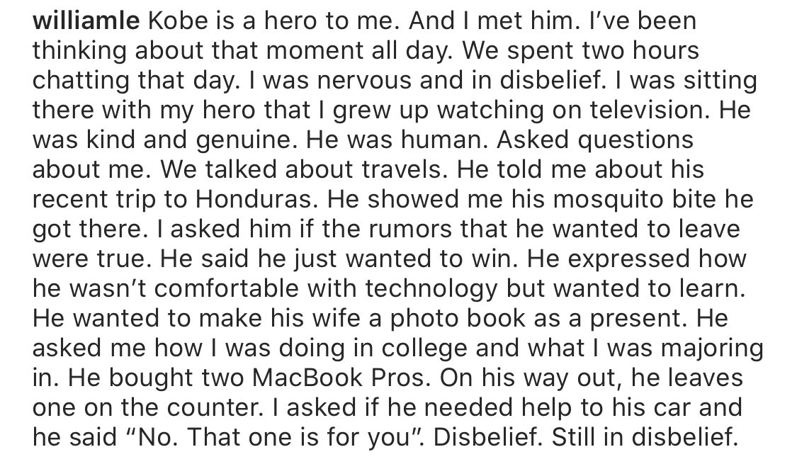 My former Apple Store Fashion Island co-worker on Kobe Bryant: https://www.instagram.com/p/B70XpUqAx0L/ pic.twitter.com/SZ25dylMHH