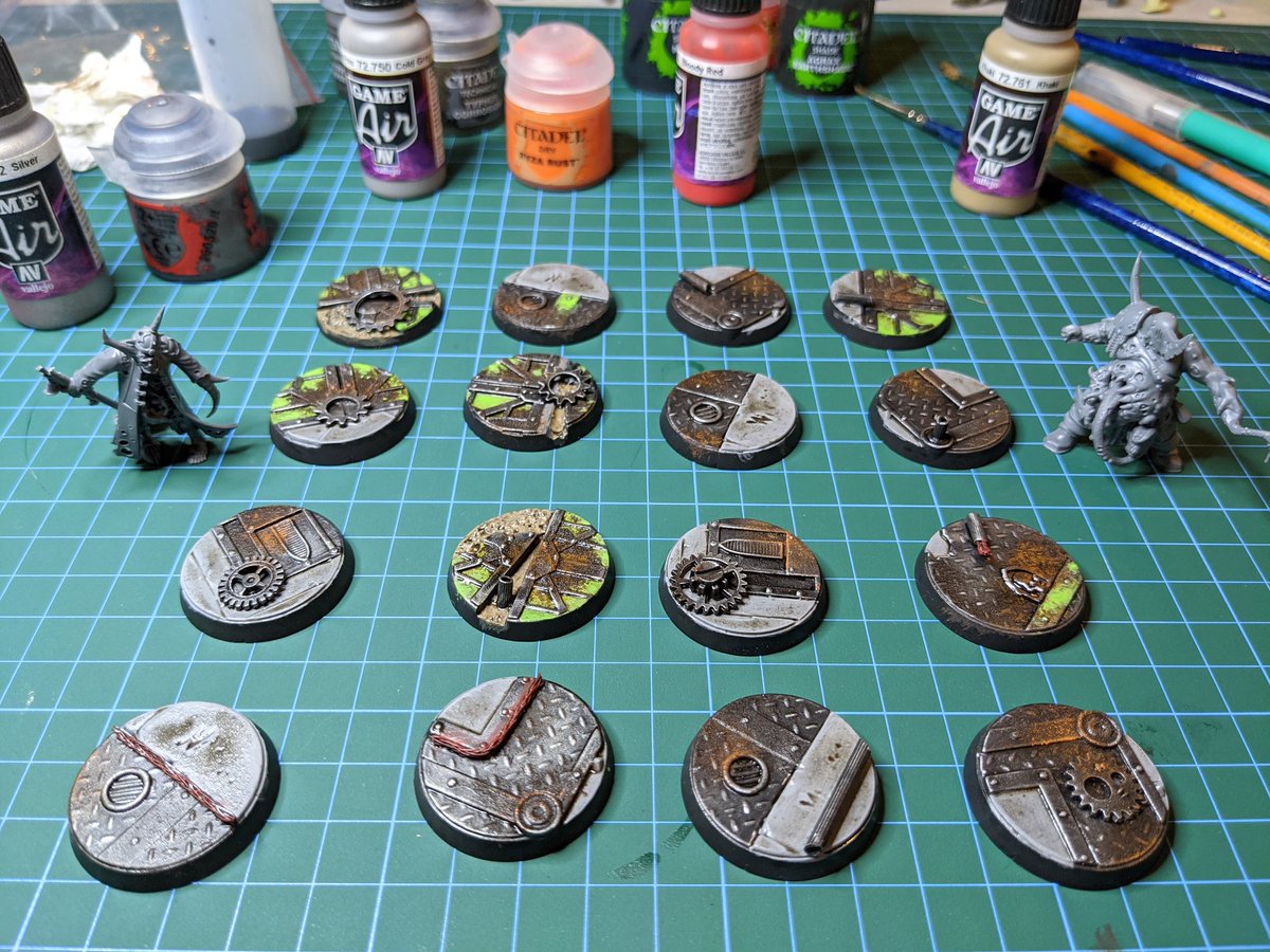 #hobbystreak day 9 Almost done with these bases for the Nurgle#bloodbowl team! Definitely some improvements to be made but I've enjoyed trying something new.pic.twitter.com/VpvEPhNlZg