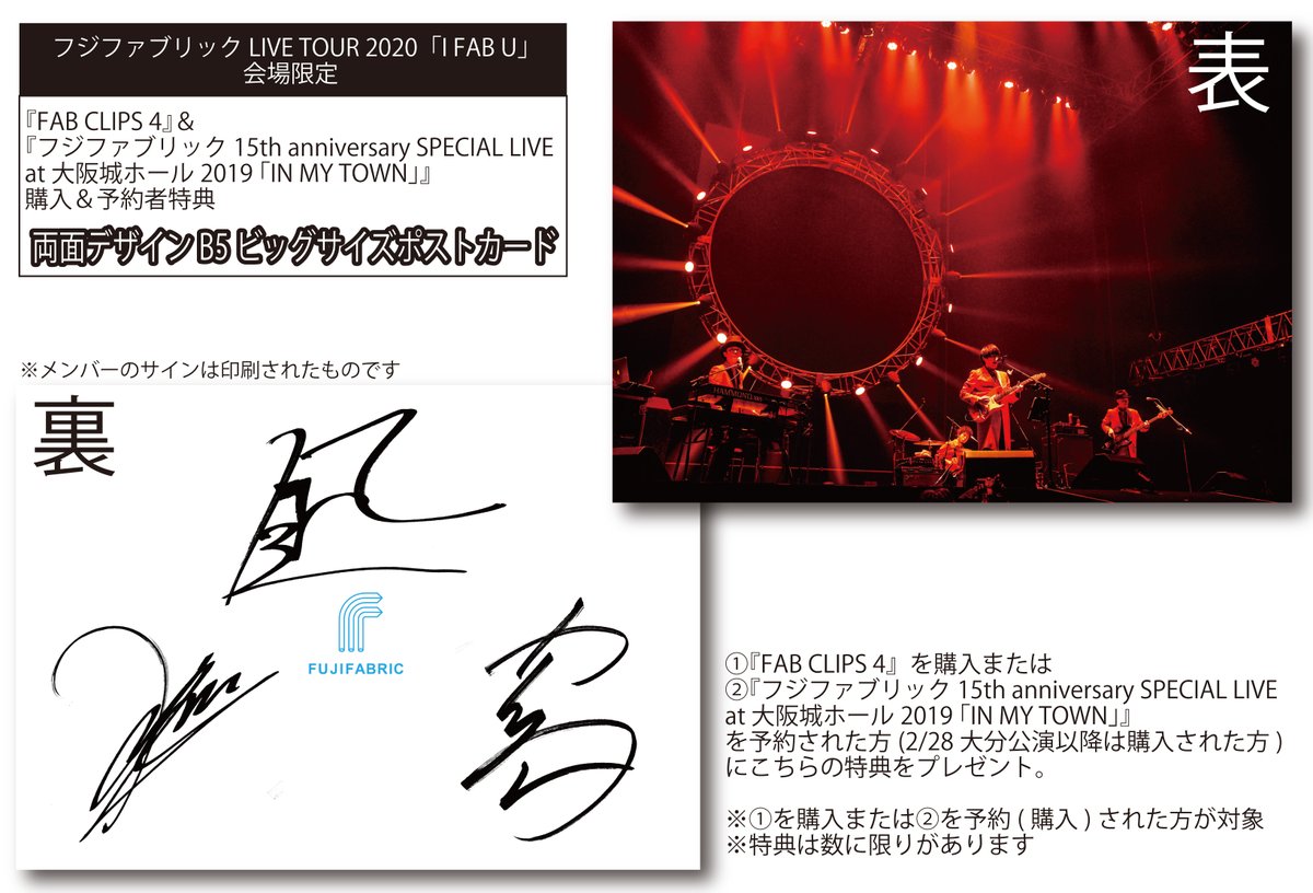 【ツアー会場購入者特典】 I FAB Uツアー会場で『FAB CLIPS 4』または『フジファブリック 15th anniversary SPECIAL LIVE at 大阪城ホール2019 「IN MY TOWN」』をご予約・ご購入された方を対象に先着で「両面デザイン B5ビッグサイズポストカード」をプレゼントいたします。 ※特典は先着順となりますpic.twitter.com/hOtHPxlG6q