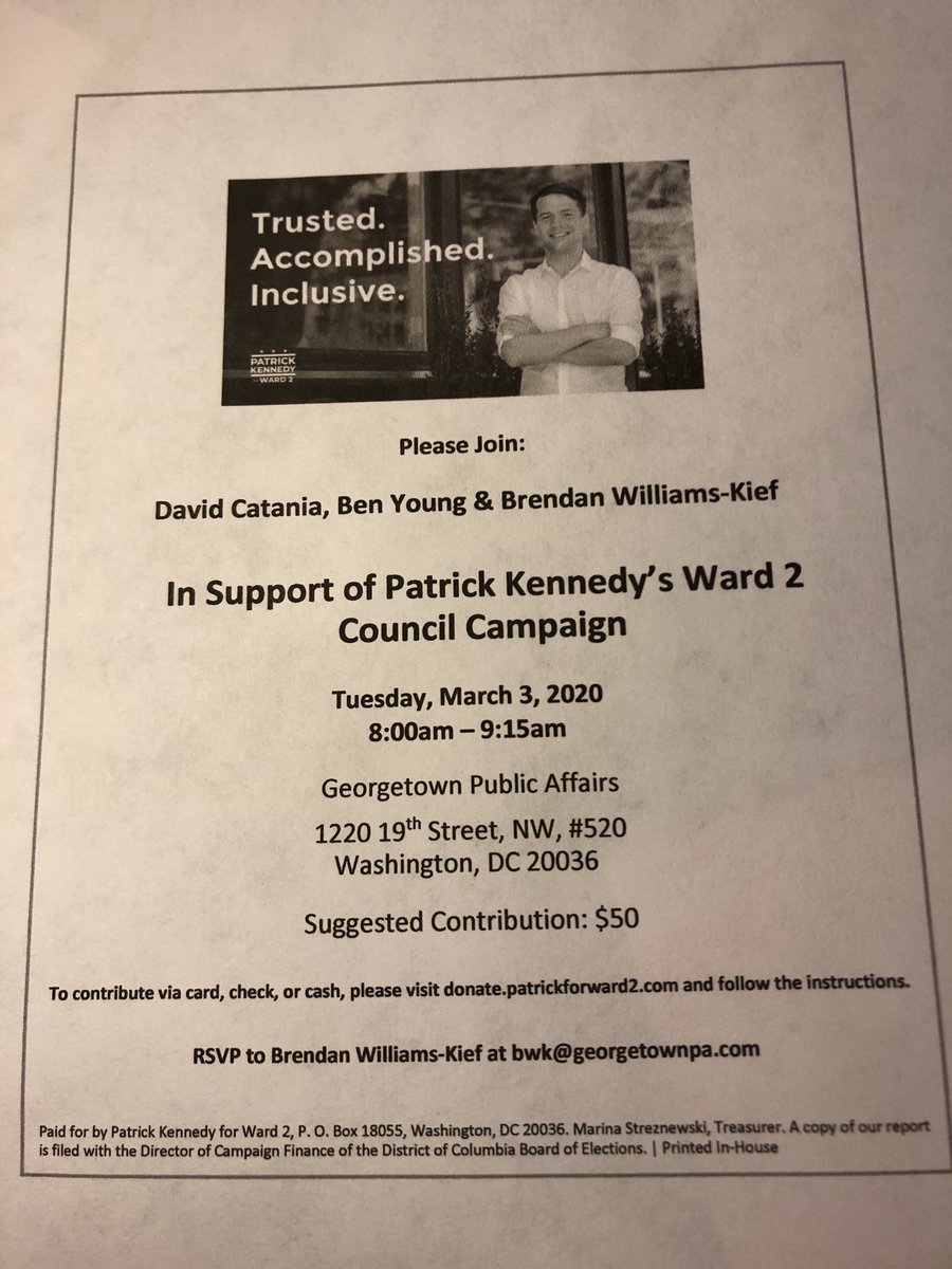 Mr. Kennedy is looking more and more like the status quo candidate in the race. As Jack Evans’ former campaign manager, Mr. K seems to be mimicking Jack’s past ... Both ... Initially Men of the People ... who then become the very Swamp Monsters they originally opposed ...