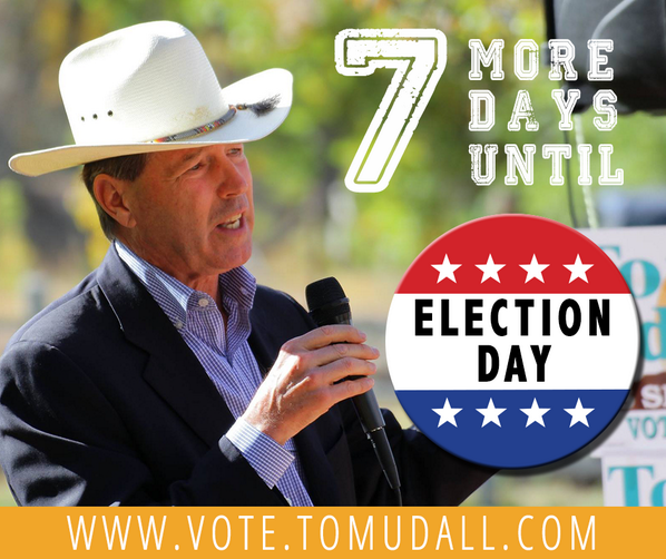 There are 7 days left in this election. Do you know when & where you’ll vote? Plan it out: http://vote.tomudall.com pic.twitter.com/bROzQjjRvC