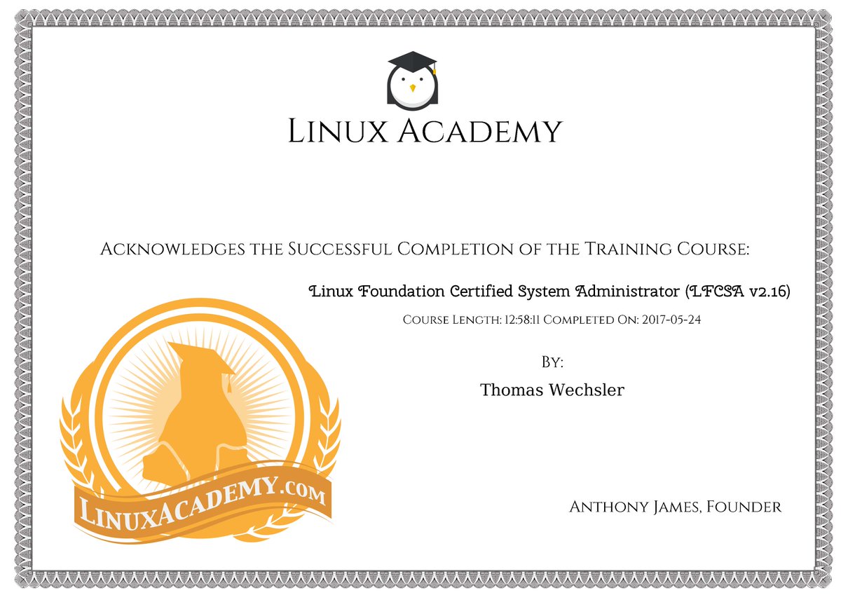 Got it!! #Linux #Foundation #Certified #System #Administrator @linuxacademyCOM