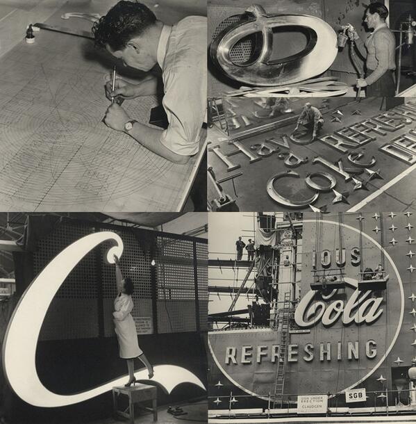 Making of the Coca-Cola sign, Piccadilly Circus 1954