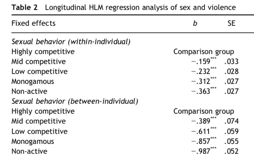 What the paper finds, unless I'm misreading, is that violence decreases with number of sexual partners. Men with 6+ sexual partners (highly competitive) are the most violent, followed by 4-5 (mid-competitive), then 2-3 (low-competitive), then 1 (monogamous), then 0 (non-active): pic.twitter.com/YhusRT9ML6