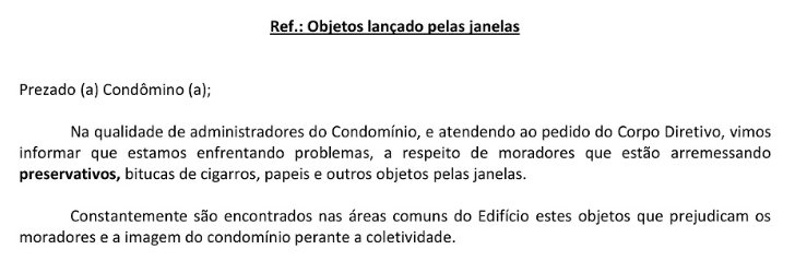 Século XXI e a síndica ainda precisa mandar cartinha pedindo para não jogarem bituca e CAMISINHA pela janela do prédio PQP VIZINHOSpic.twitter.com/yj2WM1CWCR