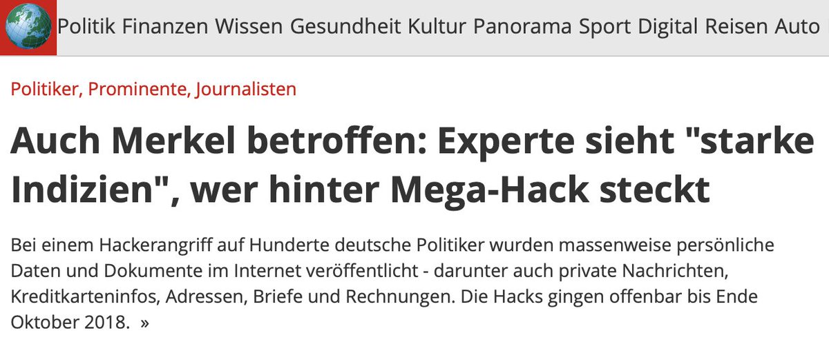 #BREAKING Germany faces the biggest hacker attack in its history. Private data of almost 1000 German#Bundestag,#Regional Parliament &#EU delegates was leaked. I worked through the leaked data all night. It's shocking! Not affected so far:#AfD. https://www.bild.de/politik/inland/politik-inland/hacker-angriff-daten-von-politikern-gestohlen-und-veroeffentlicht-59349480.bild.html …#BTleaksShow this threadThanks. Twitter will use this info to make your timeline better. UndoUndo -