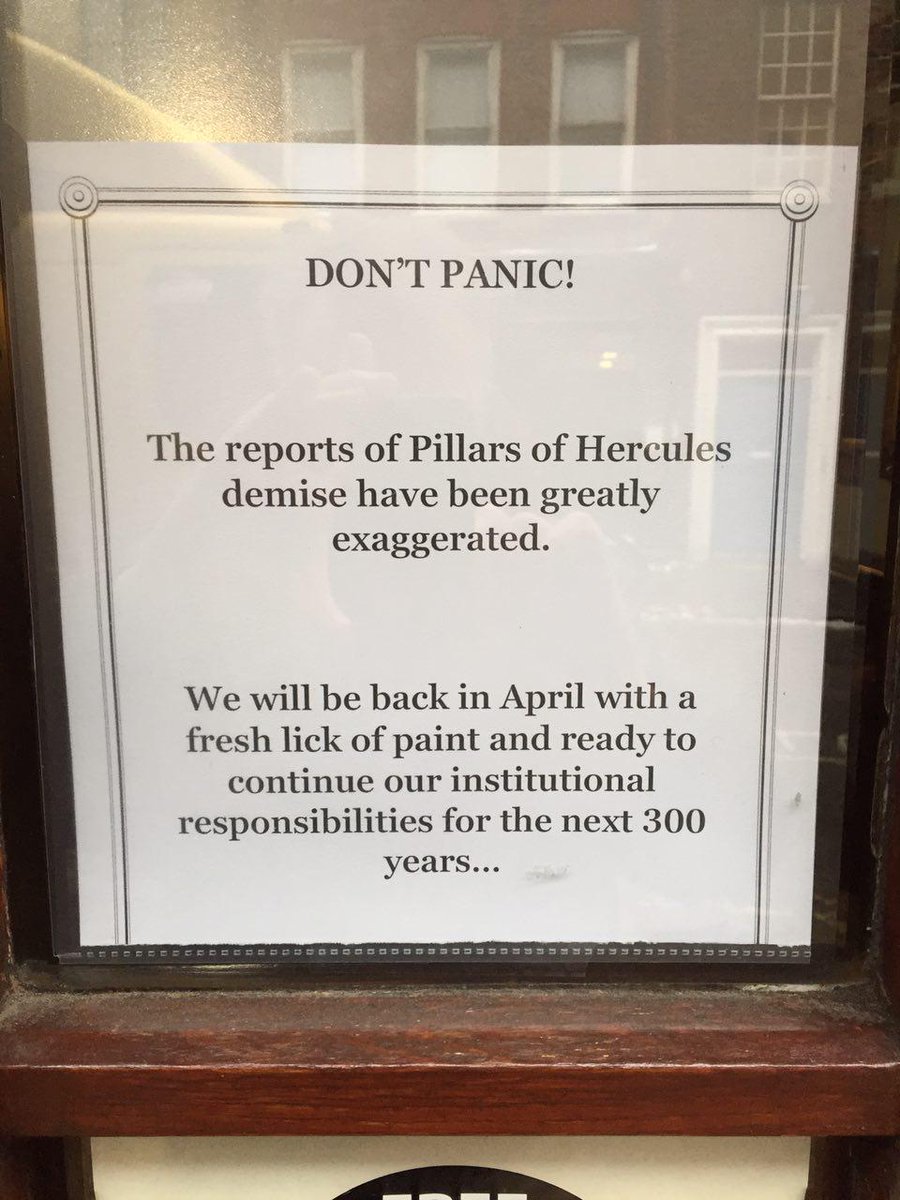 Actual good news for once. The Pillars of Hercules, one of Soho's greatest pubs, is NOT (as widely reported) closing for good.pic.twitter.com/cvpZrDGLPV