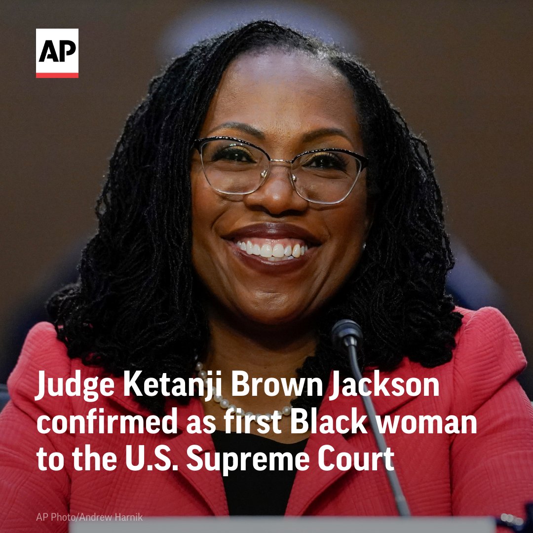 Judge Ketanji Brown Jackson was confirmed to the Supreme Court 53-47, mostly along party lines but with three Republican votes. When Vice President Kamala Harris called the final tally, the chamber erupted in cheers that echoed beyond its doors. http://apne.ws/MEUHgSa pic.twitter.com/8i1E7IhkjB