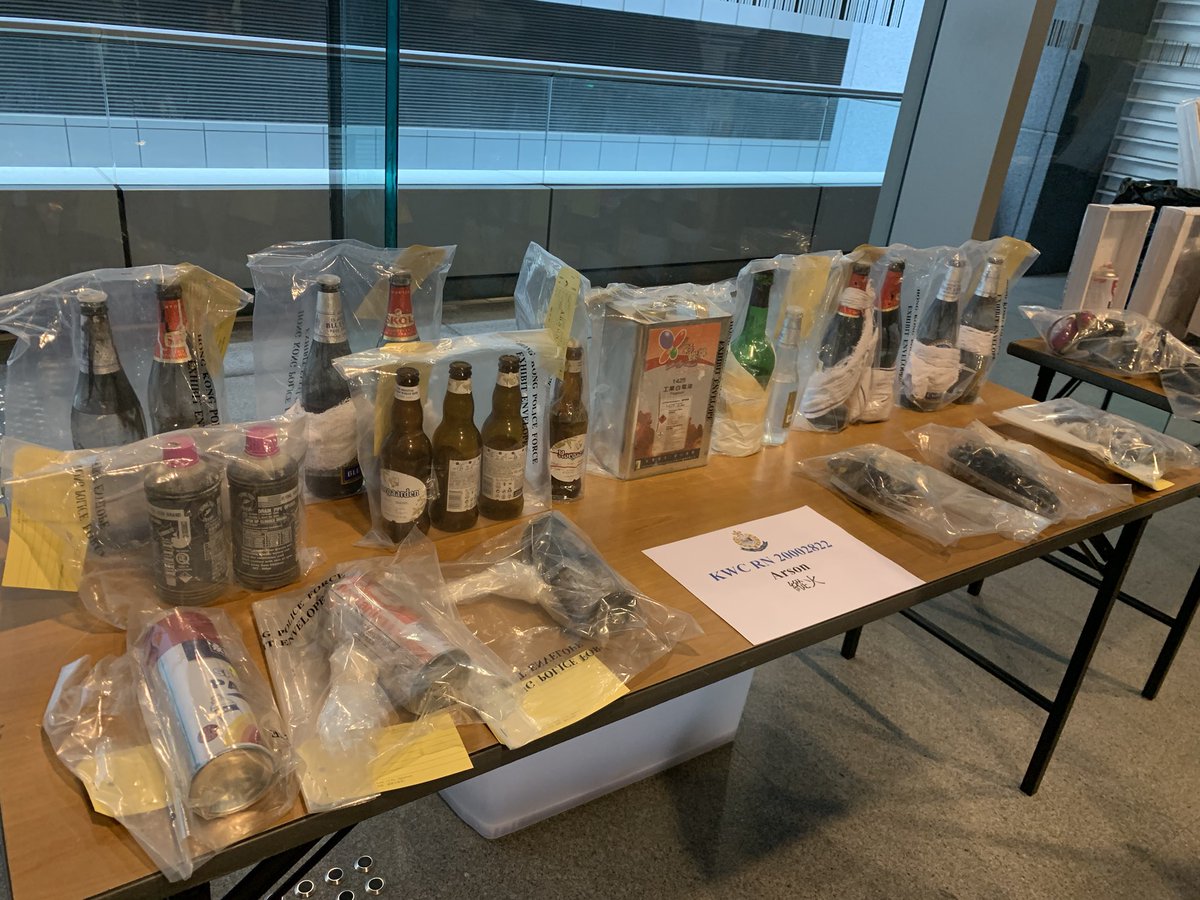 Everything seen in those photos are household items: Spray paint, empty bottles, cooking oil, a bag of sugar, lighter fluid, a hammer, a pair of gloves, a T-shirt, a gas mask (now a HK household item) Look around you and do the “have cops got grounds to arrest me?” challenge.https://twitter.com/damon_pang/status/1224951896156229634 …