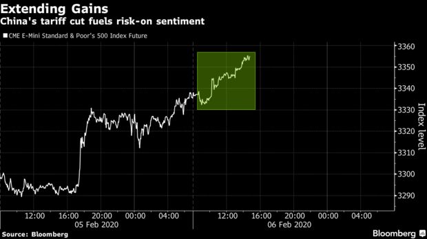 U.S. stock futures extend gains after China said it will halve tariffs on some $75 billion of American imports https://trib.al/BNMfGEf pic.twitter.com/j8Dz2zvAhP