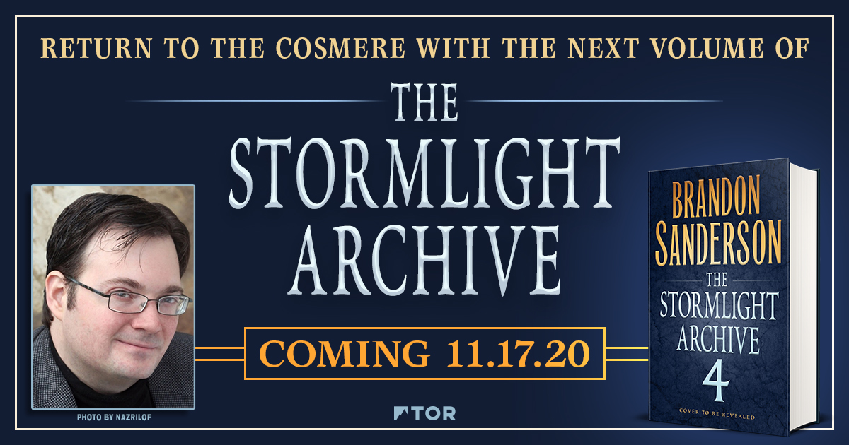 #Stormlight4 by@BrandSanderson? We are. It's coming November 17, 2020! Preorder here: http://bit.ly/2E5EPXK pic.twitter.com/u97LV5vlKw