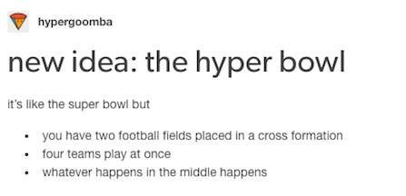 Every year i see the same Superbowl Tumblr post go around and honestly it's my favorite one.pic.twitter.com/NyvGUdqglN