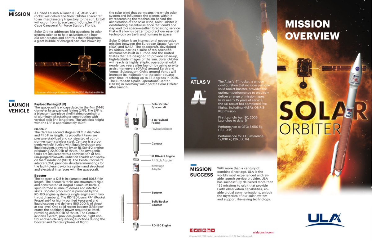 #AtlasV rocket and its launch of@ESASolarOrbiter in ULA’s Mission Overview! Download the PDF here: http://bit.ly/3b9qJDX#WeAreAllSolarOrbiterspic.twitter.com/wkN6bHIQPP