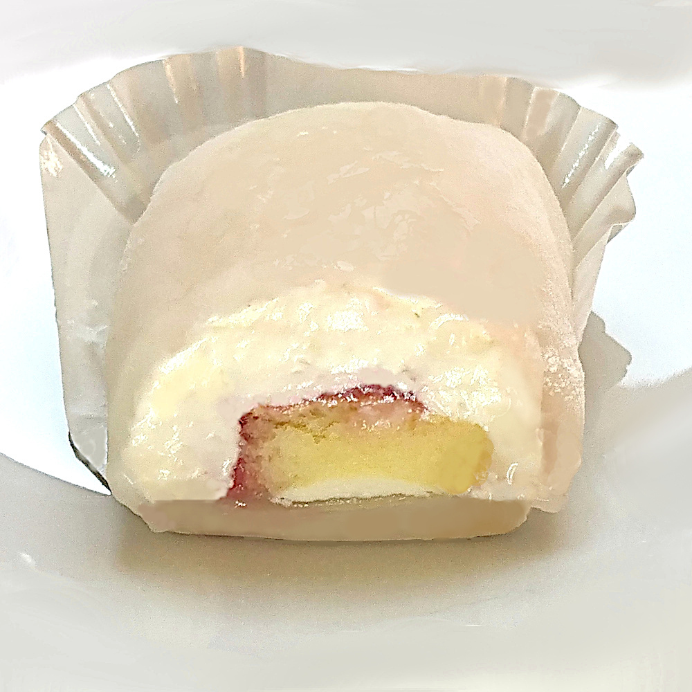 #UchiCafe#モチクルン『#おもちでくるん苺レアチーズ』薄い求肥 生地の中に 甘酸っぱい いちご