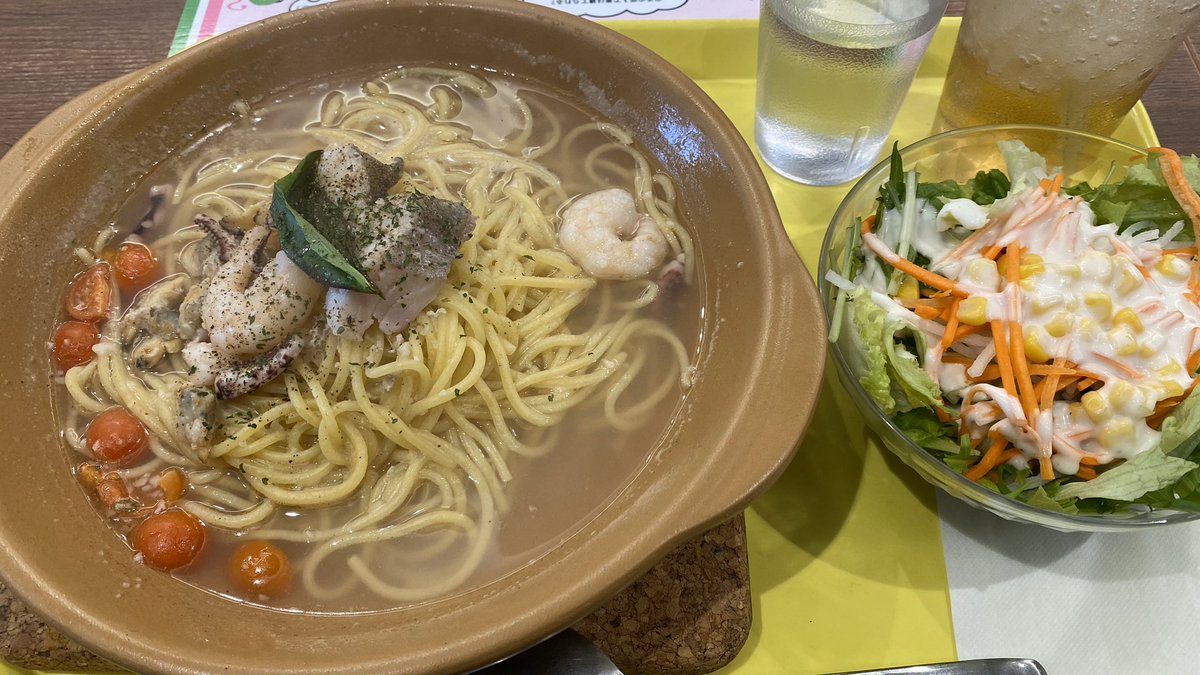 今日のランチはイオンモールのフードコートで、期間限定アクアパッツァ風パスタ