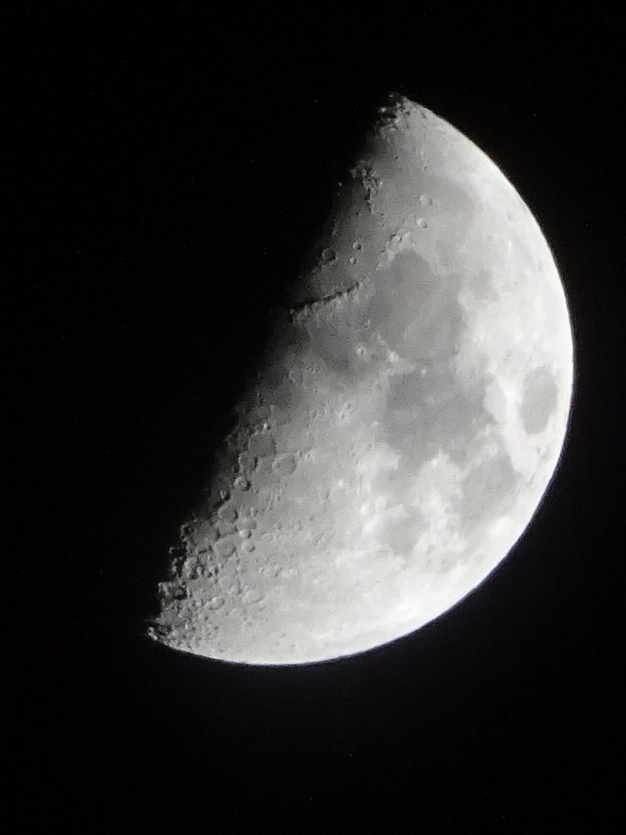 見た目には今夜の方が半月らしく見えるけど、クレーターを見ると月面X終了していて、やっぱり昨夜が上弦の半月だったとよくわかる(^^)