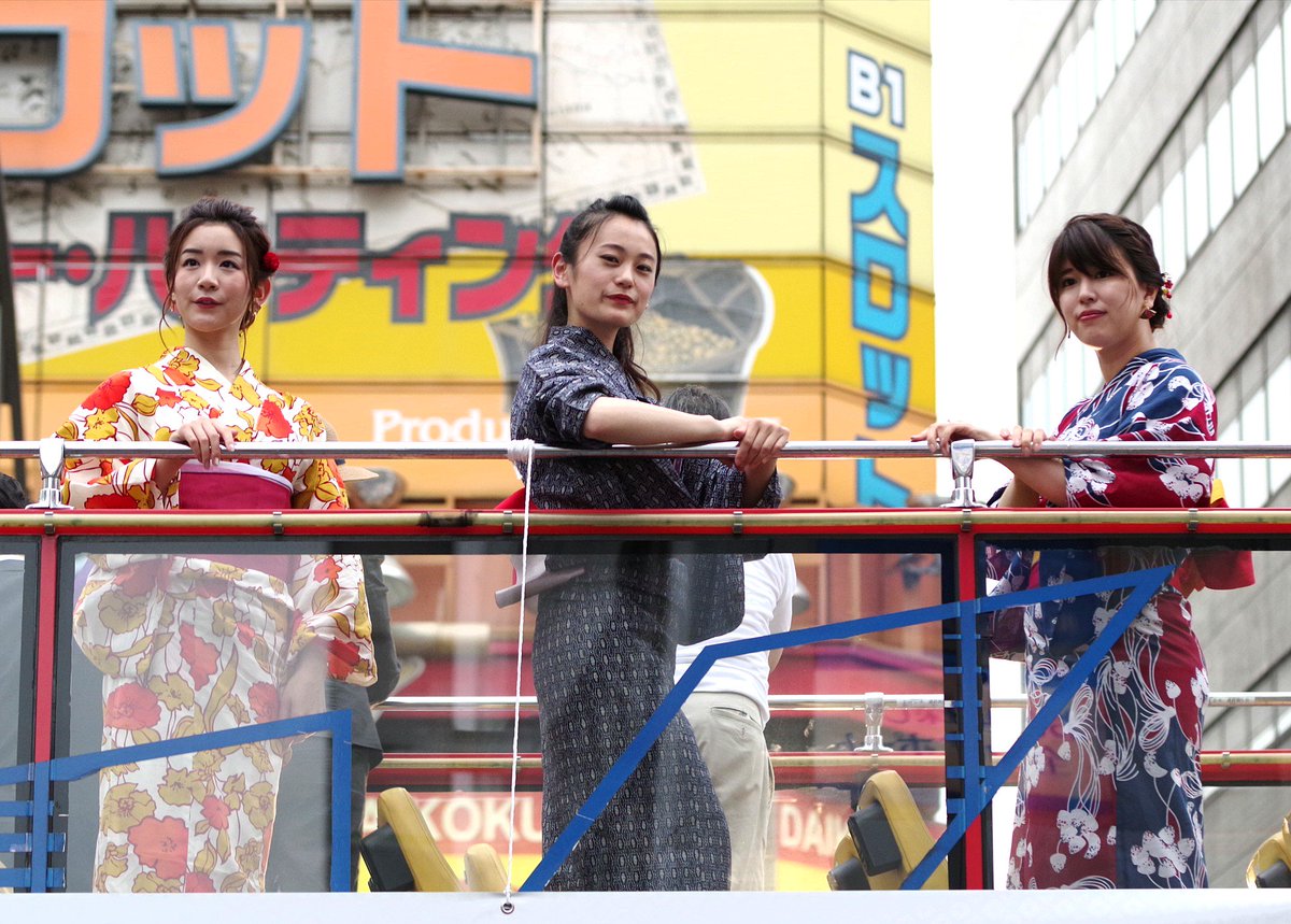 #うえの夏まつり#かぶらきしおり#東京浅草剣舞会エッジ うえの夏祭りパレード、東京浅草剣舞会エッジかぶらきしおり オープンバスにて、都知事と同乗#都知事小池百合子pic.twitter.com/nBaYxmbLf9