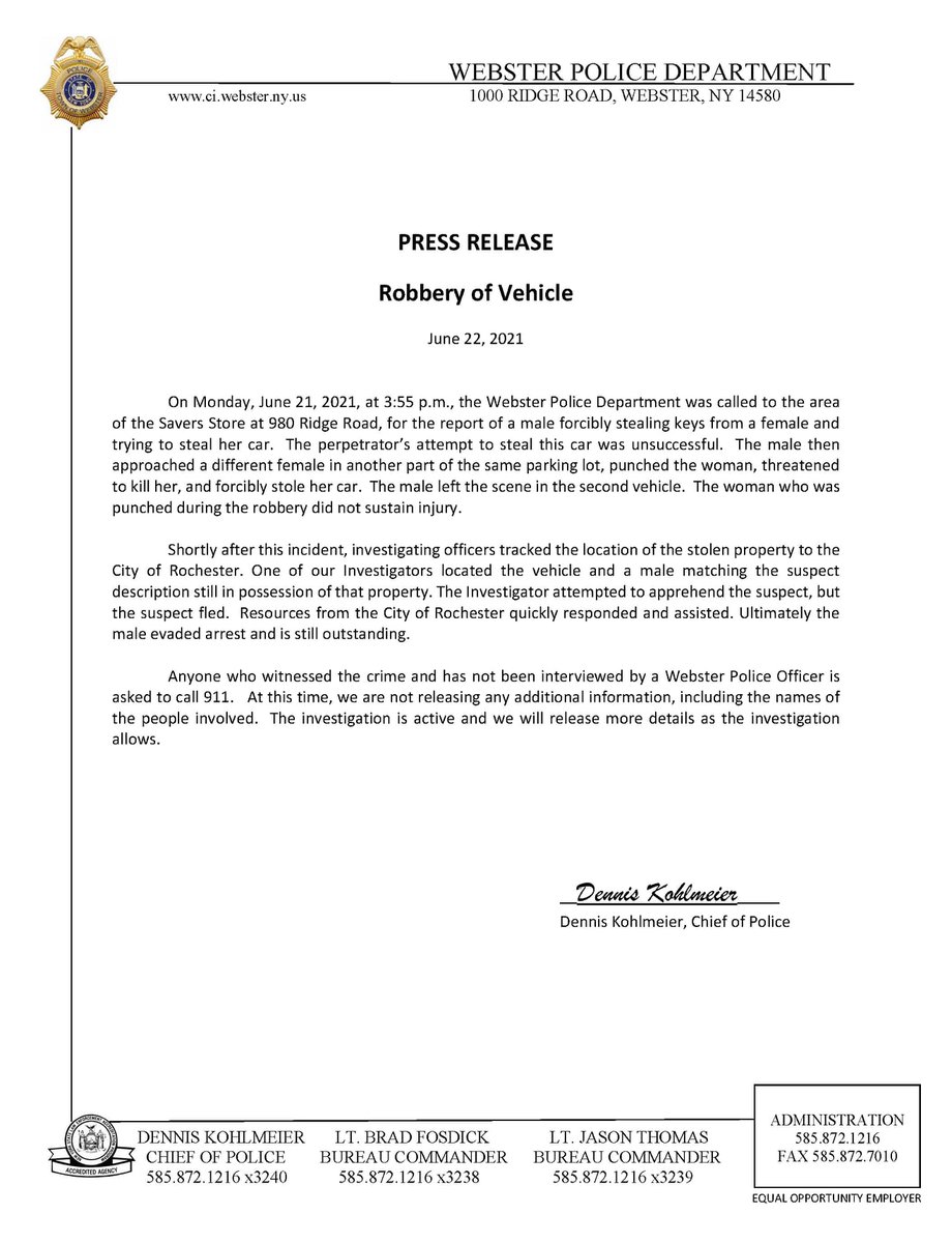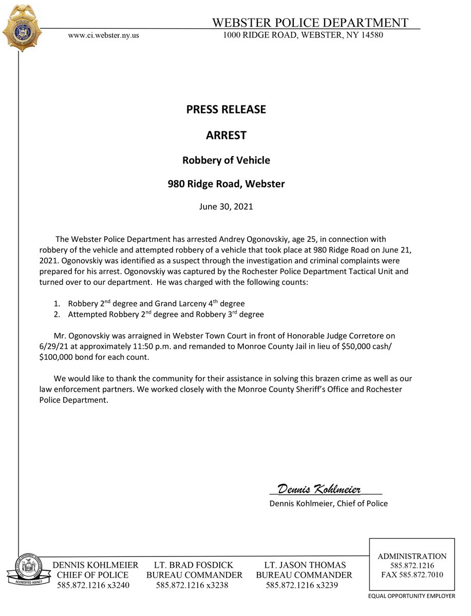 Webster Police Dept. Update for June 30, 2021 - Vehicle Robbery Arrestpic.twitter.com/kxevFOMbUi