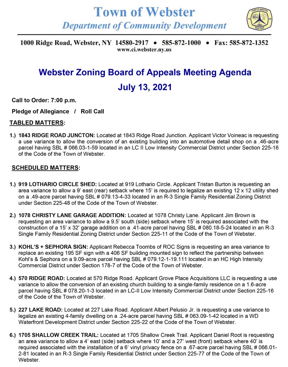 Webster Zoning Board Meeting Agenda for July 13, 2021: To view project documents and submit comments please visit: http://ci.webster.ny.us/552/Zoning-Board …pic.twitter.com/uklK3HDF5V
