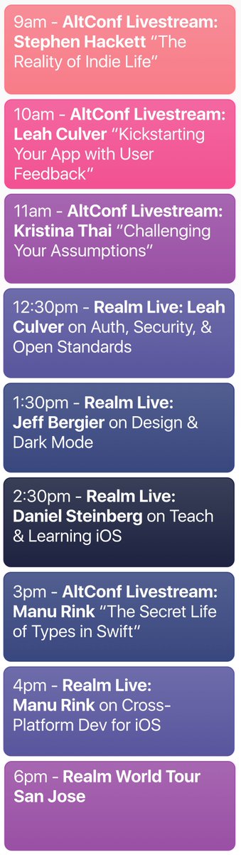 #AltConf talks to our Realm Live! schedule! Check it out at https://news.realm.io/news/live , then tune in on Twitter!#WWDC17pic.twitter.com/Afxxv83ZRc