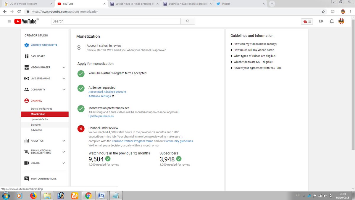 @TeamYouTube Hi Team, I am honestly working with Youtube from last year, I have completed 4000 watch hour, 1000 subscriber task 4 months ago, my Channel is under review, Please review my channel as soon as possible. Snap attached. Channel Id-https://www.youtube.com/channel/UCrwL_uy8qIEJ8mWbuy0uI9w …pic.twitter.com/YwoxXTKlbl