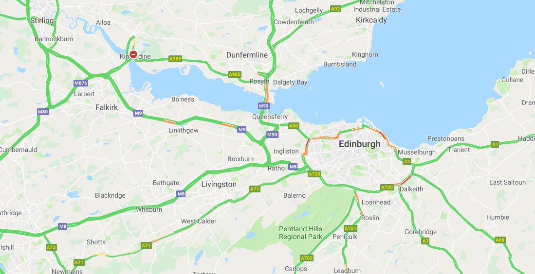 Slow southbound along the Queensferry Crossing and on the Edinburgh bypass westbound approach to Sheriffhall but calm elsewhere