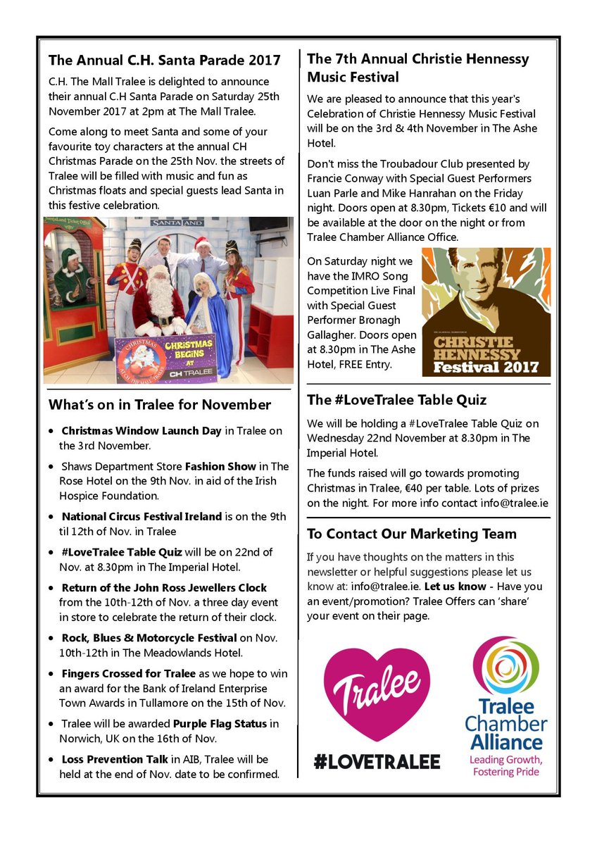 Our programmes for the Christie Hennessy Festival are now available from Tralee Chamber Alliance