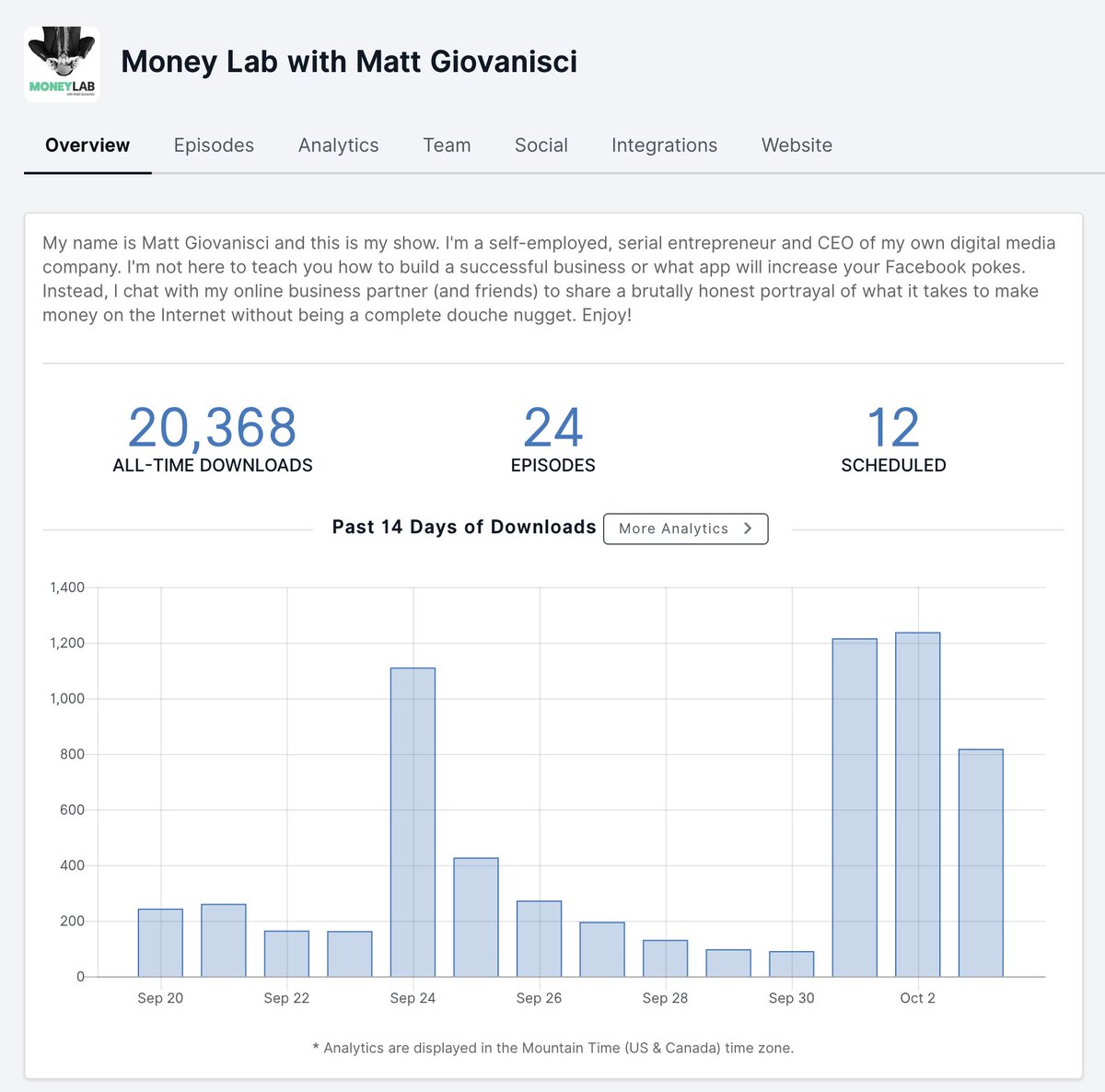 #podcast is growing...a little. Our experiment is working...so far. Here are the stats from@TransistorFM of our experiment: https://www.moneylab.co/podcast-burst/ pic.twitter.com/pxmxm4xrtX