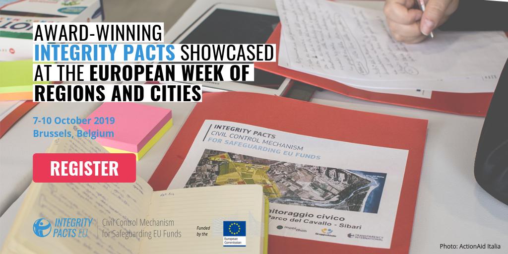 #EURegionsWeek & find out how CSOs involve citizens in the monitoring of EU funds spending through the#IntegrityPacts project. Register by 27 September