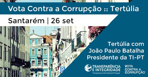 Amanhã, dia 26 de Setembro, a TI-PT estará na Biblioteca Municipal de Santarém (Sala de Leitura Bernardo Santareno) para mais uma tertúlia "Vota Contra a Corrupção"!pic.twitter.com/aignUFCr8S