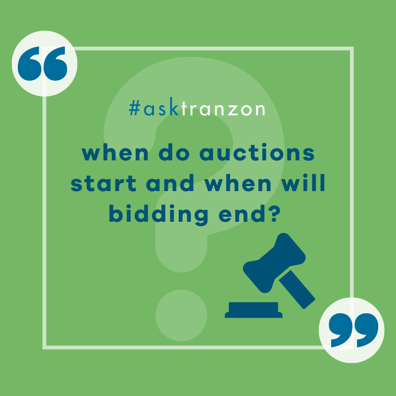 Start and end times will be on the listing page for each property being auctioned off. All times are listed in EST.