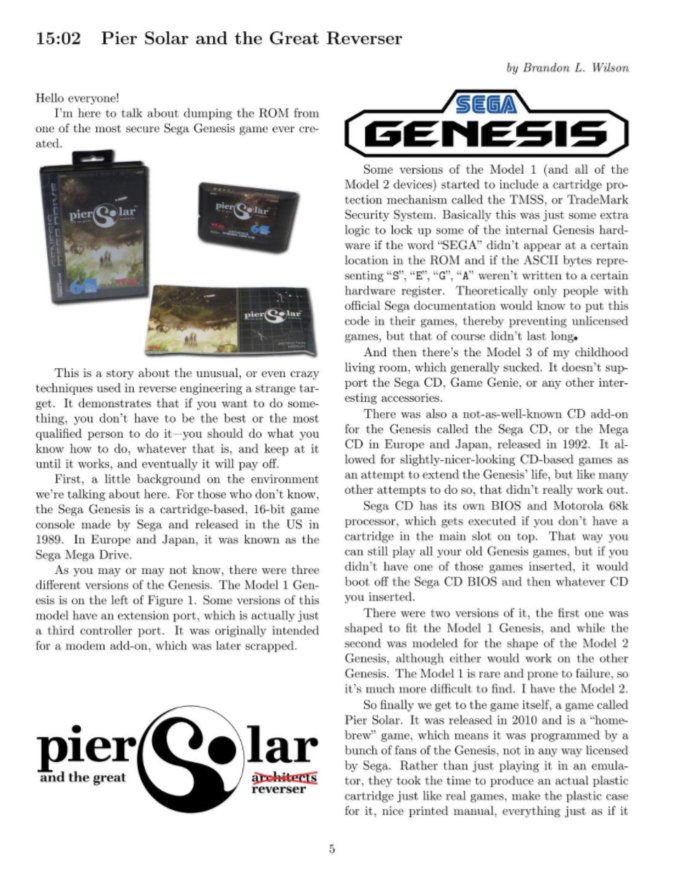 PoC||GTFO 15:02 - dumping the most secure Sega Genesis (MegaDrive) game ever created. https://archive.org/stream/pocorgtfo15#page/n4/mode/1up …pic.twitter.com/kQ1Wap0zT3