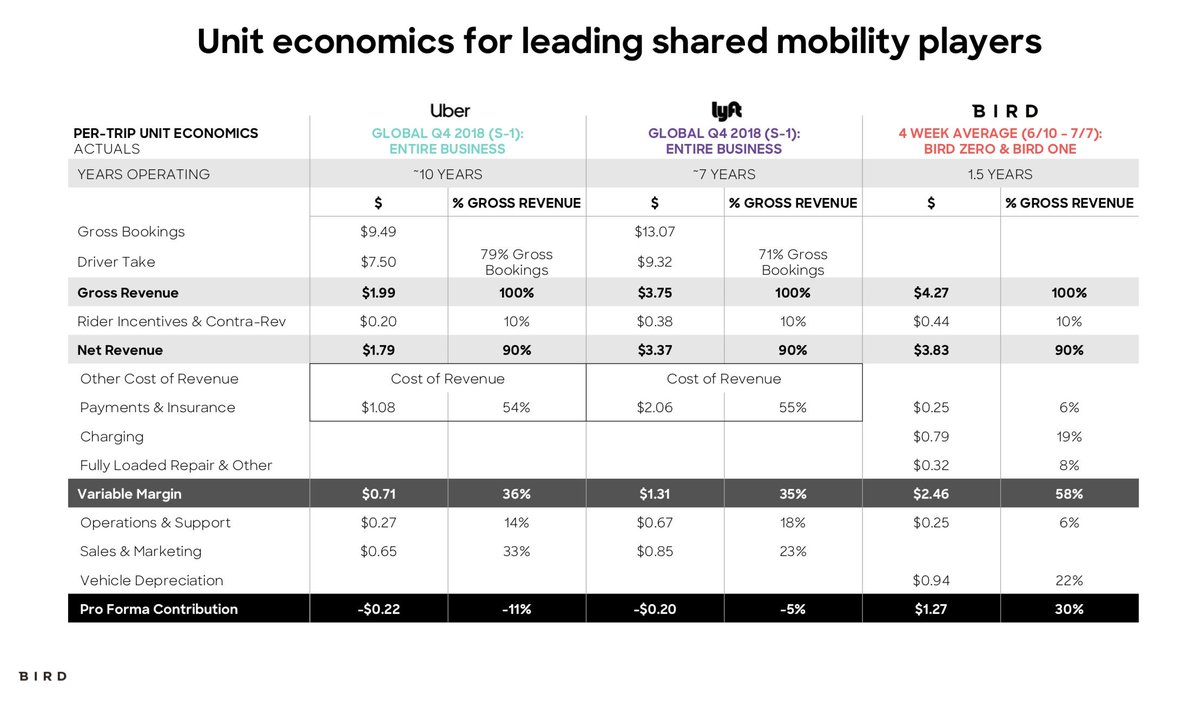 3/ Bird is now making $1.27 on every ride on the Bird Zero scooters, which is over 75% of our fleet. Yes, this includes charging, repair, all other local ops, and the cost of the vehicle (depreciation).pic.twitter.com/hTN6LkaBeG