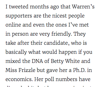 Who is Trump the most fearful of? Elizabeth. Warren. Scare Trump, vote Warren.https://twitter.com/loisbeckett/status/1222639048818184193 …