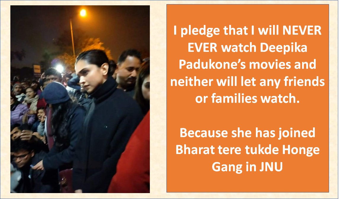 #BoycottChhapaak and all other movies of Deepika padukone who was standing with JNU Anti-Nationals for her cheap movie promotions.#TukdeTukdeGangpic.twitter.com/H8T8fumtFf