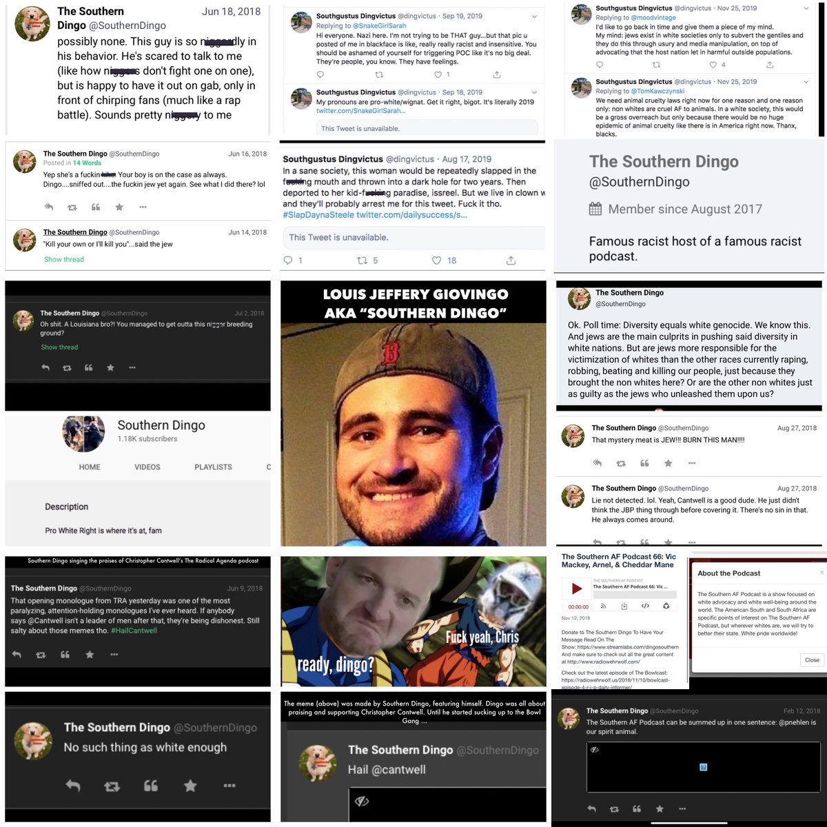 1/ Say hello to Louis Jeffery Giovingo, aka “Southern Dingo,” self-proclaimed “Nazi” podcaster. He hosts the Southern AF podcast. He’s also attended the first Unite the Right rally in 2017. He lives in Ouachita Parish, Louisiana.pic.twitter.com/KXNKUK103A