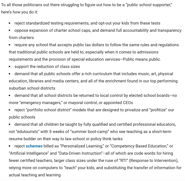 , as Trump pushes for charters & vouchers that defund, destabilize, & destroy #PublicEducation, remember that#MikeBloomberg is no different. As NYC Mayor,#Bloomberg advocated for closing schools, doubling class sizes, firing teachers. https://npeactionorg.wpengine.com/michael-bloomberg/ …pic.twitter.com/lO34jZG1wP