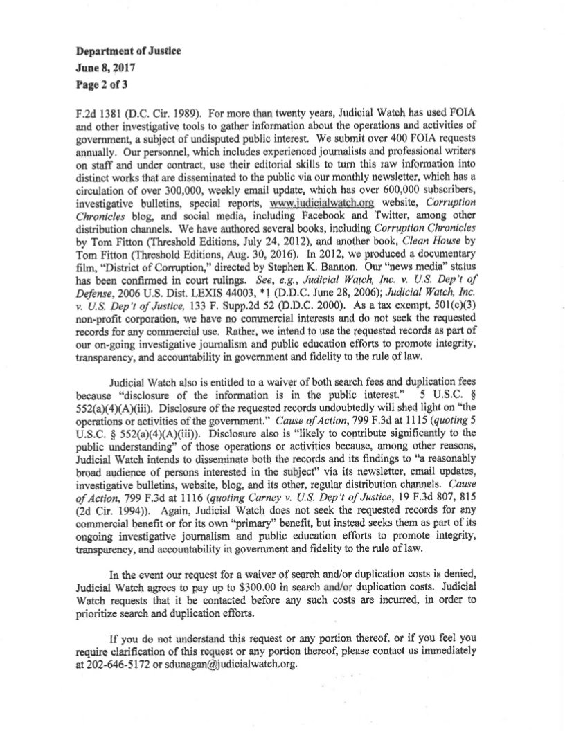 JW further filed a FOIA request w/ DOJ for any memos or other