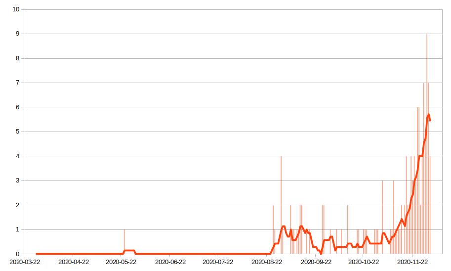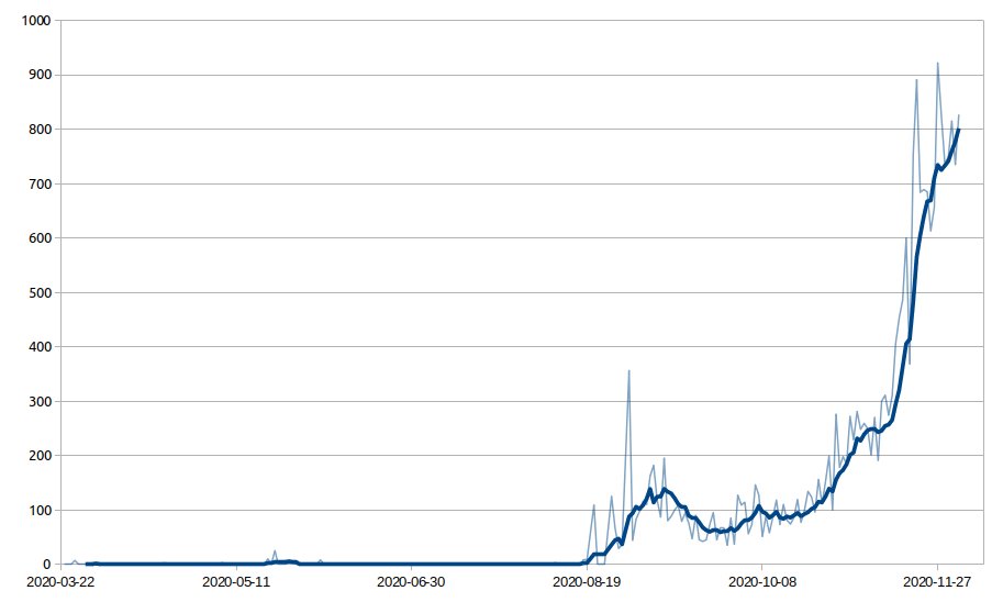 Daily deaths are also up. Sadly, the worsening of this situation is predictable, as is the continuing increase in deaths.