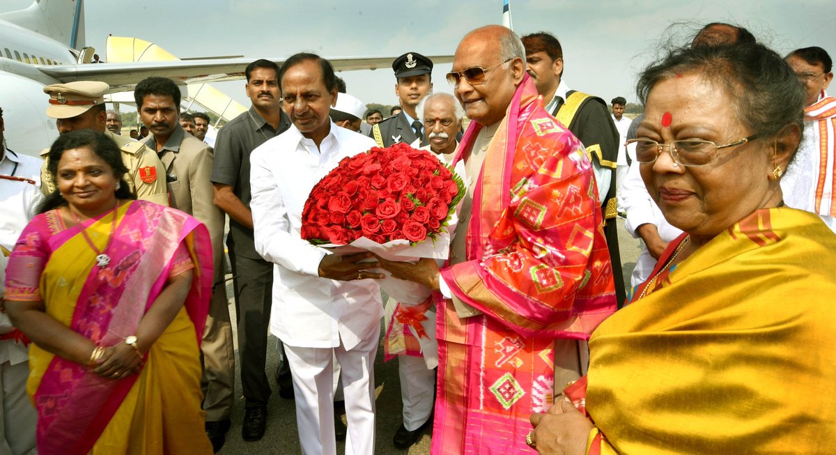 బేగంపేట్ విమానాశ్రయంలో రాష్ట్రపతికి ఘనస్వాగతం పలికిన తెలంగాణ గవర్నర్ శ్రీమతి తమిళిసై సౌందరరాజన్, హిమాచల్ప్రదేశ్ గవర్నర్ శ్రీ బండారు దత్తాత్రేయ, ముఖ్యమంత్రి శ్రీ కేసీఆర్.pic.twitter.com/4qOlMYdpWw