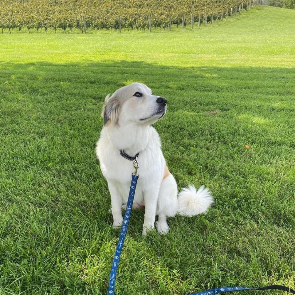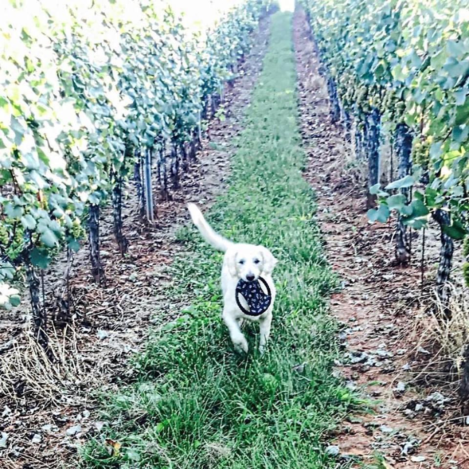 Of course the black dog is on a lead at the Trump winery...