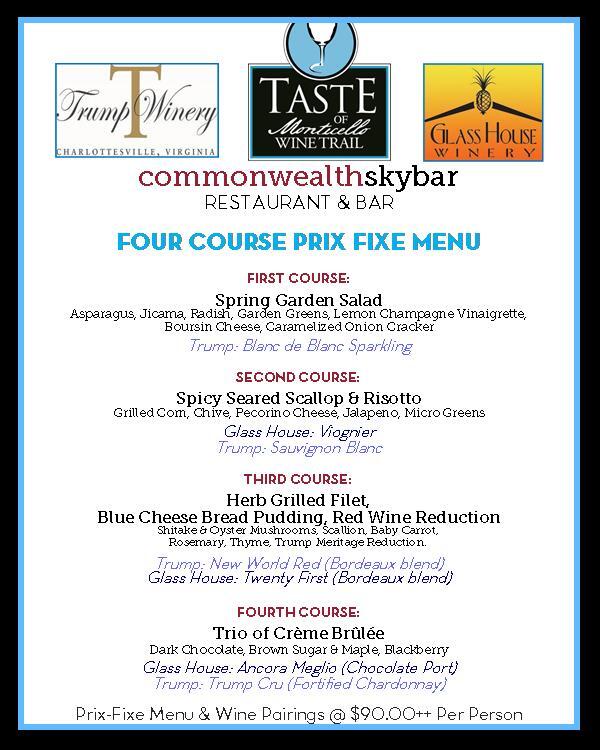 Taste of the Monticello Trail Festival Dinner @CWSkybar @GlassHouseWines Dueling wines + great food=really fun #MWTpic.twitter.com/NNIlszlhvS